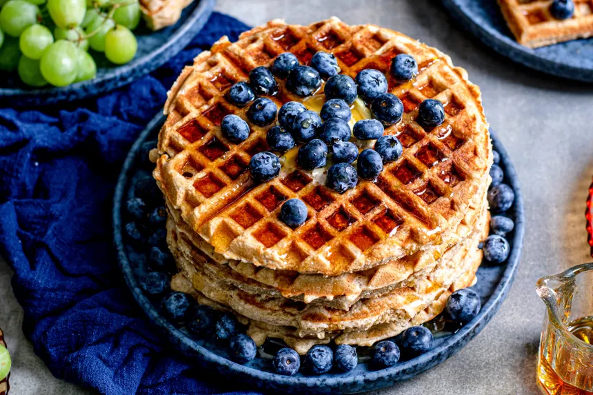 DIRECTIONS Mix well together. There should be no lumps. Bake in a waffle iron, or like regular pancakes. Variation: add 1/2 cup finely chopped apple and 1/2 teaspoon cinnamon.